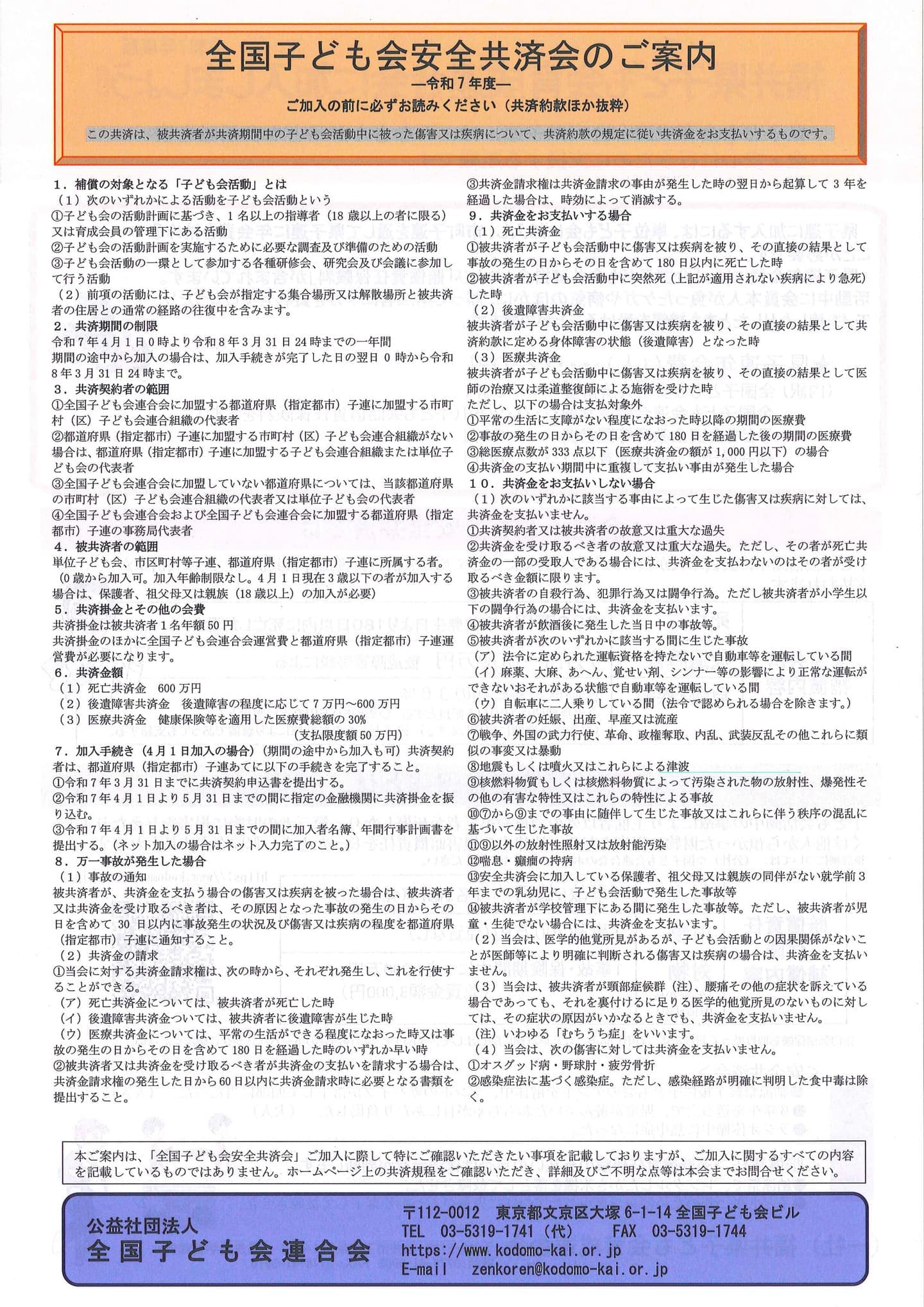 被共済者の相互扶助の精神に基づき、子ども会活動を安心して行なうために、