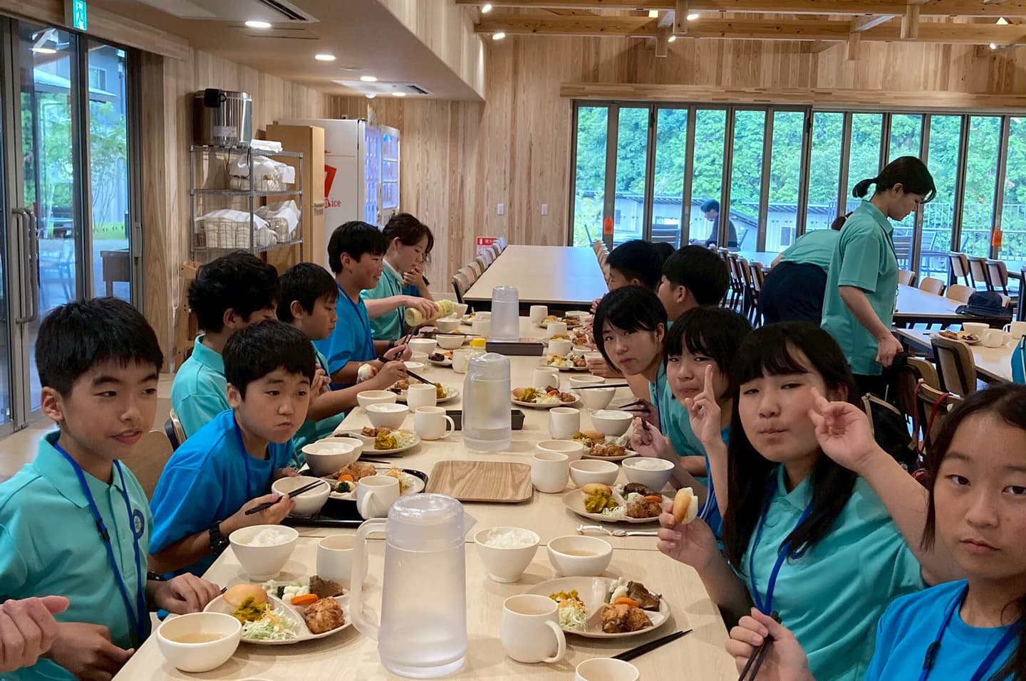宿泊は「金峰山自然の家」です。9年前の熊本地震で被害を受け、新しく建て直してこの春オープンしたばかりの施設です。