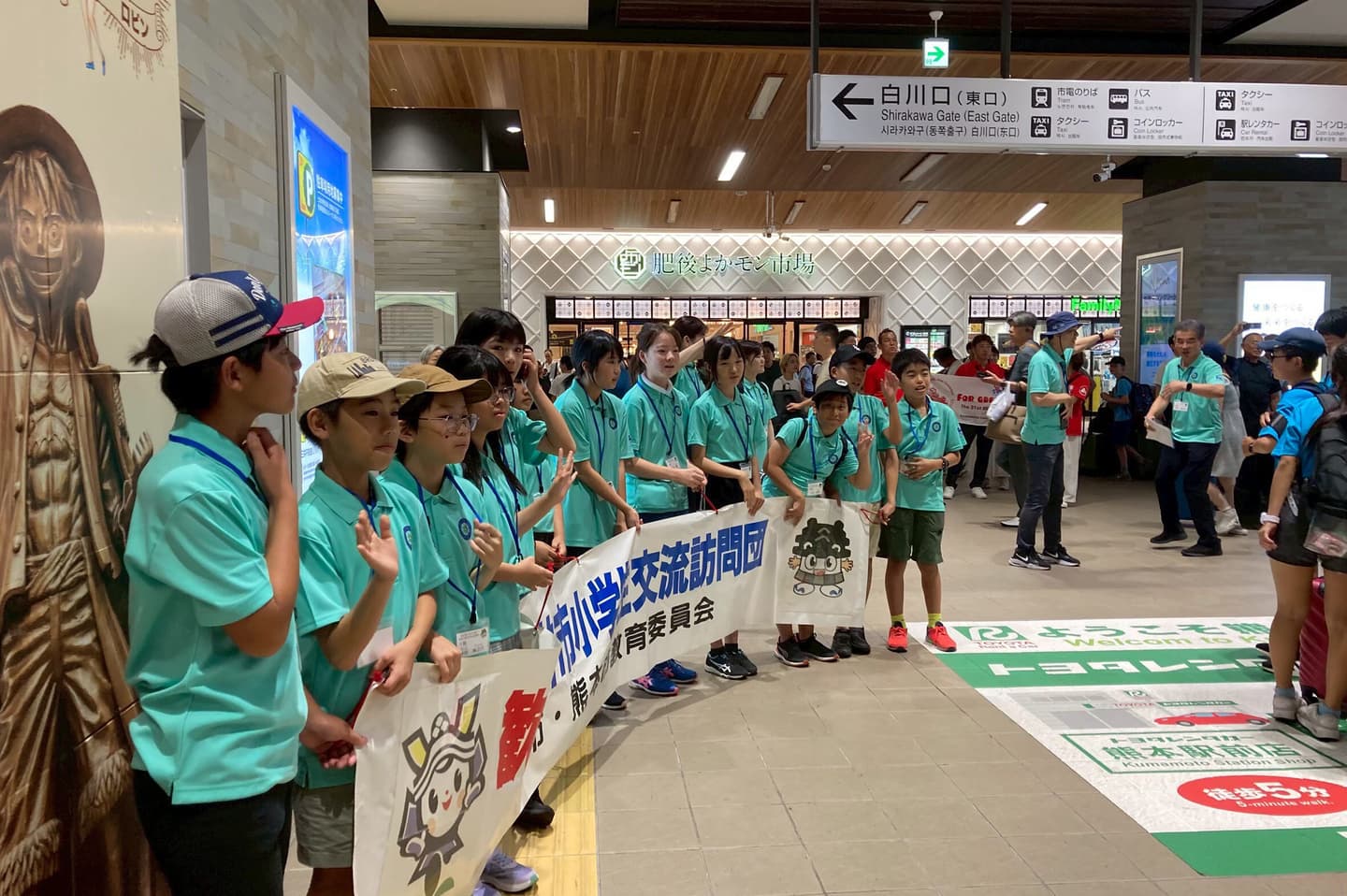 早朝6時半に福井を出発。新幹線、特急、新幹線と乗り継ぐこと6時間。12時半に無事到着。熊本駅で熊本団員のお出迎えを受けました。