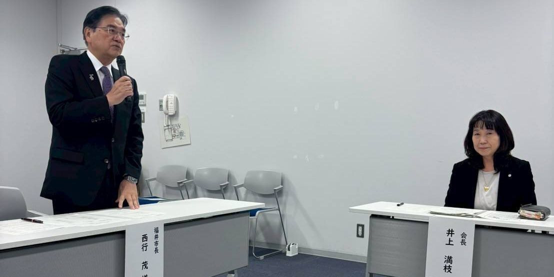 令和6年11月22日(金)に福井市子ども会育成連合会の事業の「市長と語る会」が開催されました。例年だと「教育長と語る会」を開催していましたが西行市長に幅広く福井市子ども会育成連合会のことを知って頂きたく企画しました。はじめに、連合会の各部会の説明をして東安居地区と鷹栖地区の活動報告をしました。市長からも、福井市の活動方針「子どもまんなか社会」の実現に向けての考え方の想いを頂きました。今後は、福井市と連合会が更に寄り添い子ども達の社会教育の一環として、福井市子ども会育成連合会と協力し活動が出来ればとの御言葉も頂きました。