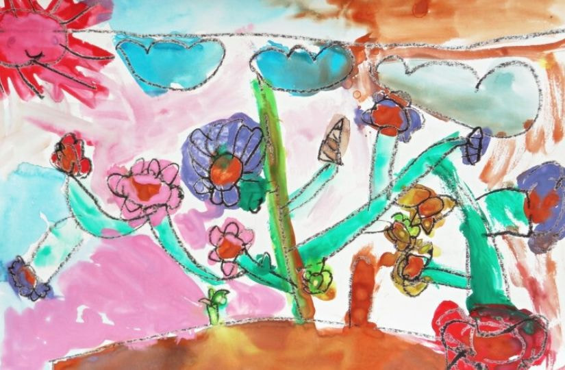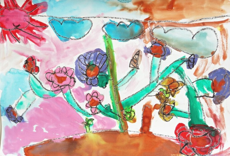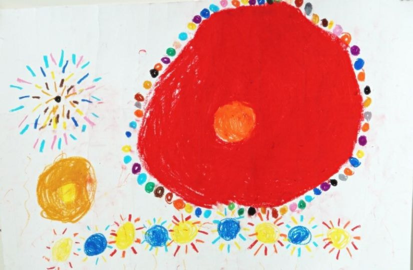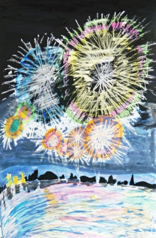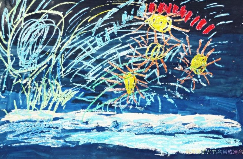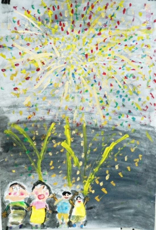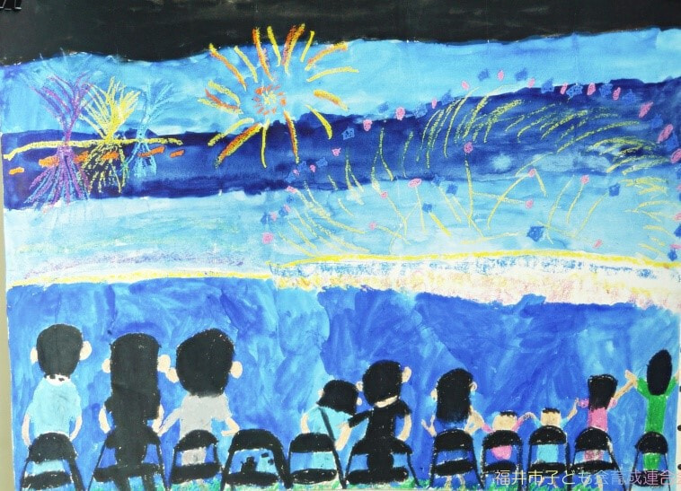 どの作品からも夏休みを楽しんでいる様子が伝わってきました。花火や旅行の思い出、夏の草花や昆虫、乗り物、町の風景など、テーマは様々ですが、一人ひとりが感じたことを大切に描いています。