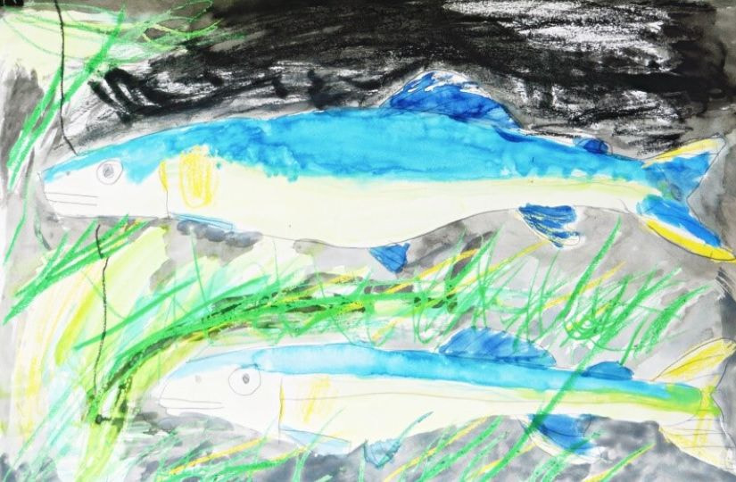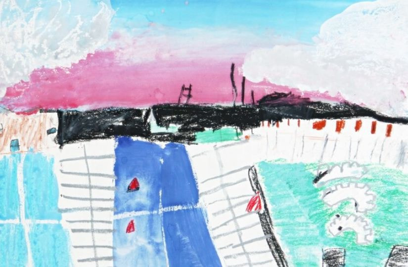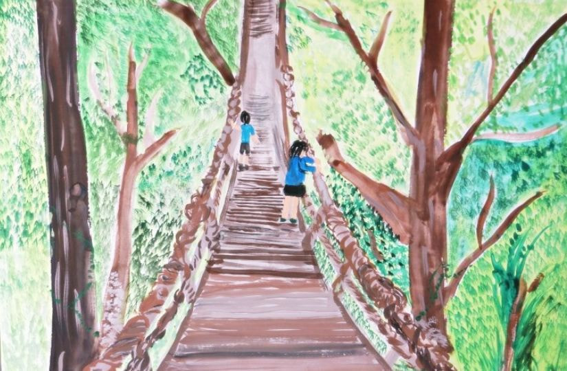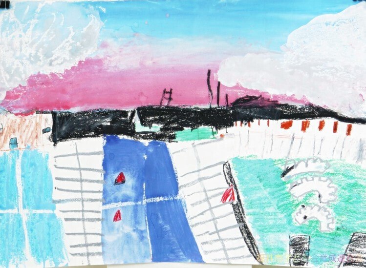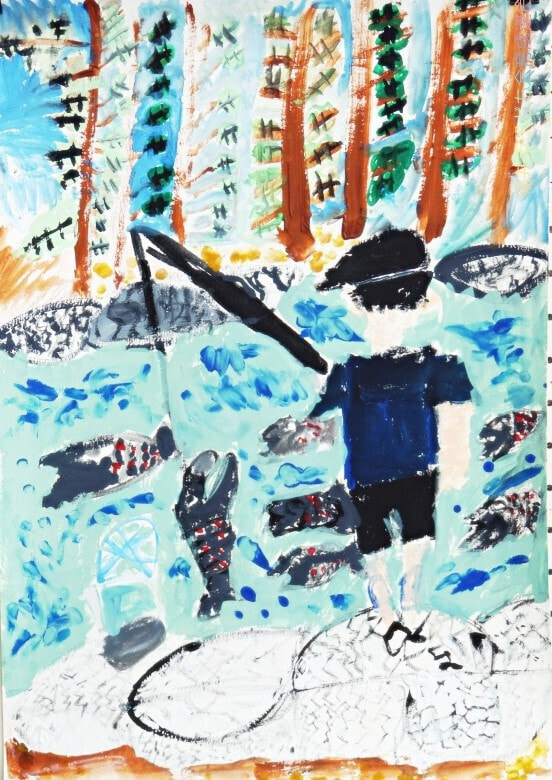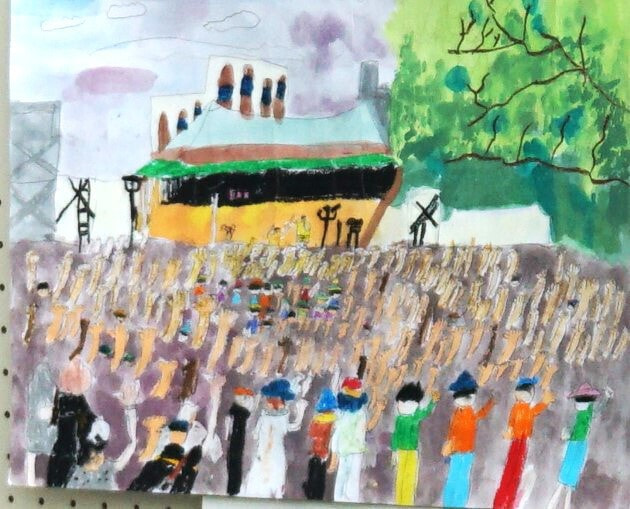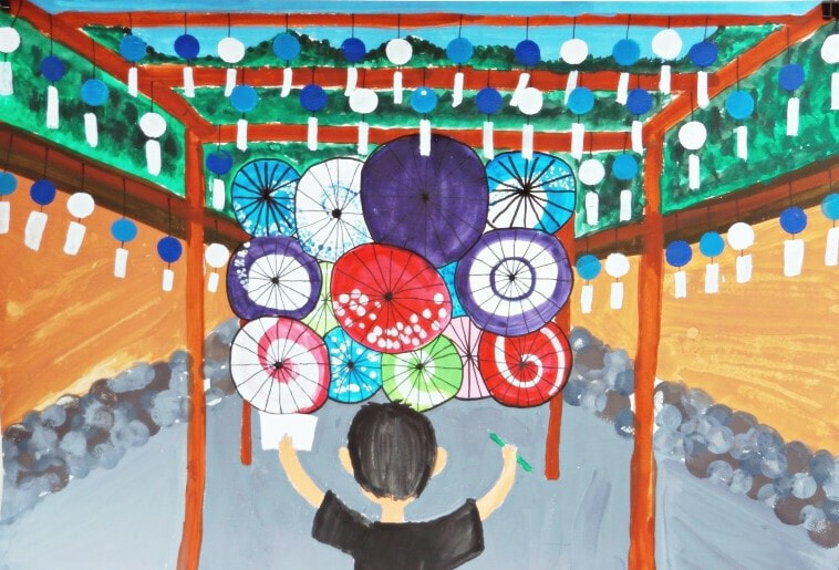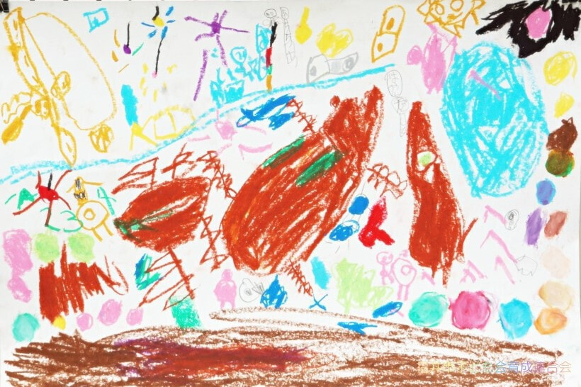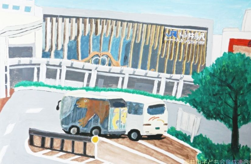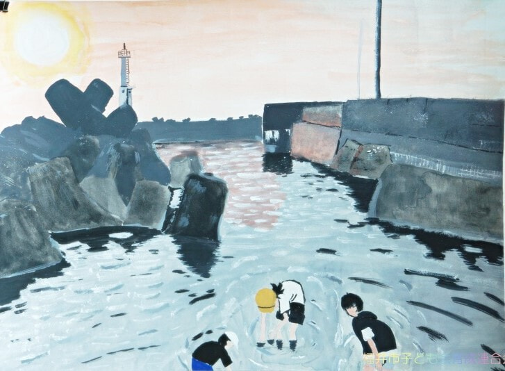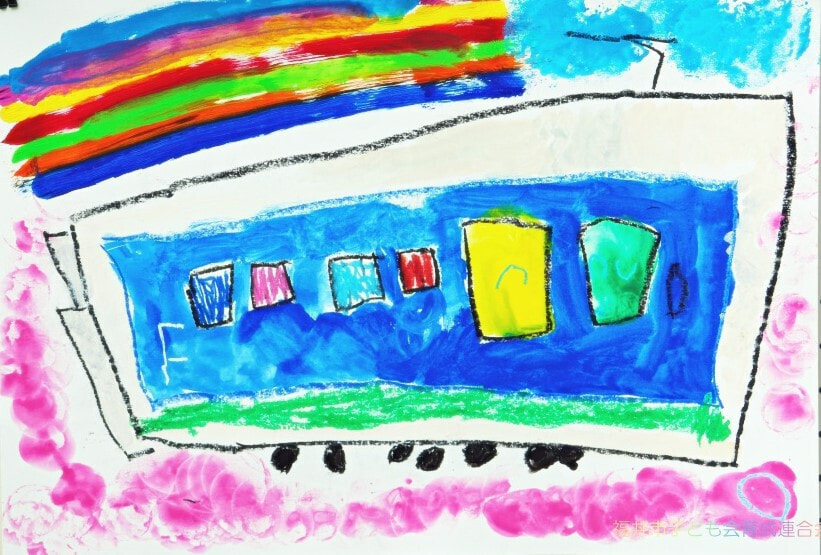 特に市長賞の作品において、幼児の部の作品は森での楽しい時間を描写していて、ピンク色からそのときの気持ちを感じることができます。1年生の作品は淡いピンクと青の空からはかなさ、2年生の作品は夏の川での魚釣りの楽しさ、3年生の作品は路面電車を丁寧に描きまるで今にも動き出しそうな雰囲気などをそれぞれ感じることができます。