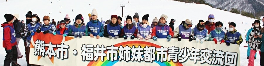 1月には熊本市の団員さんが福井を訪れスキーの体験や朝倉氏遺跡などをめぐり福井での滞在を楽しみ、ホームステイを体験します。