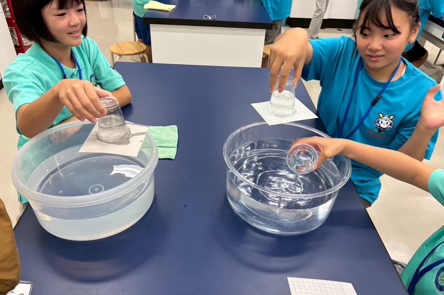 水やペットボトルなど、身近な物を使っての実験で、とても興味深いものでした。