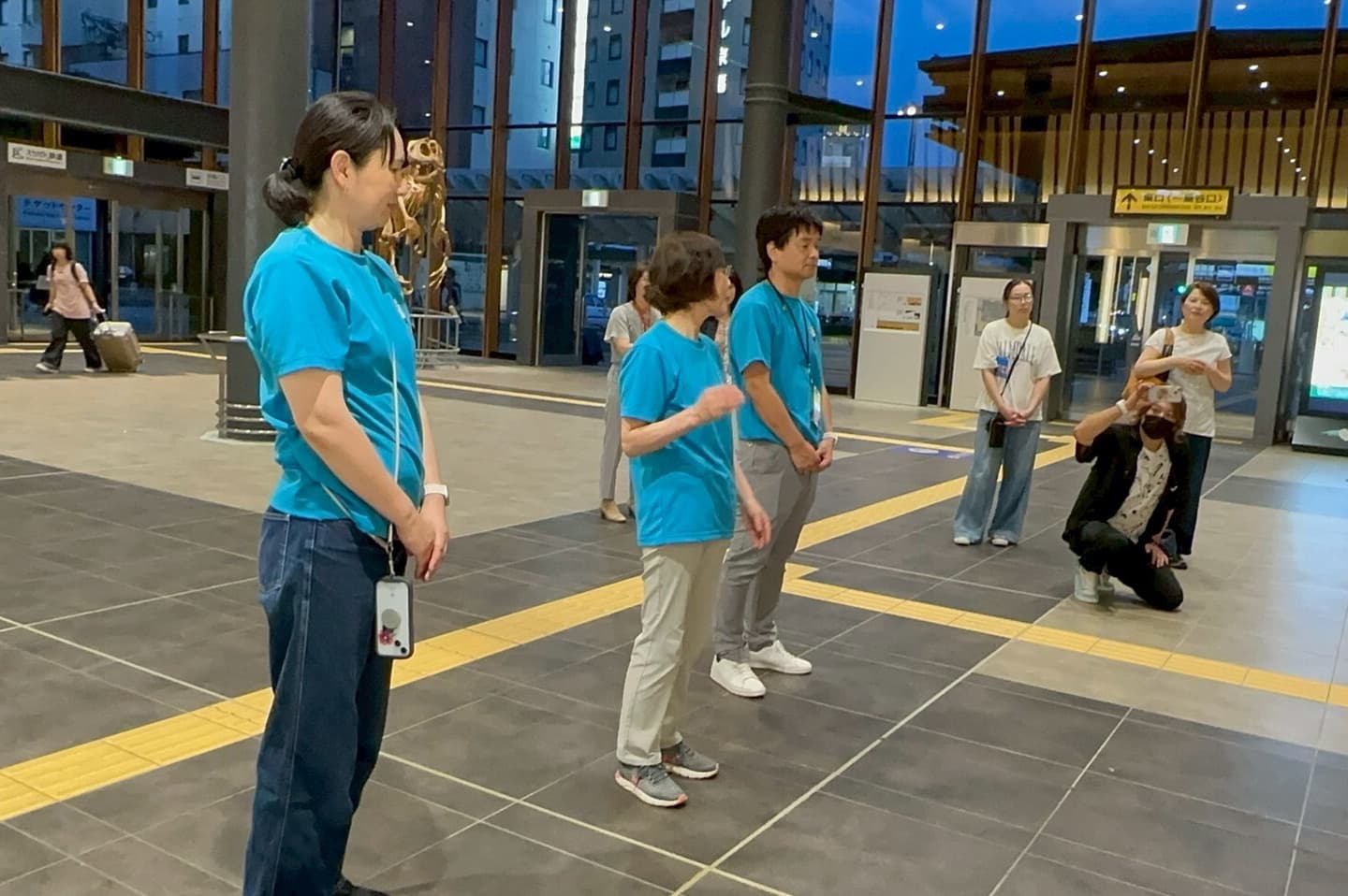 早朝6時半に福井を出発。新幹線、特急、新幹線と乗り継ぐこと6時間。12時半に無事到着。熊本駅で熊本団員のお出迎えを受けました。