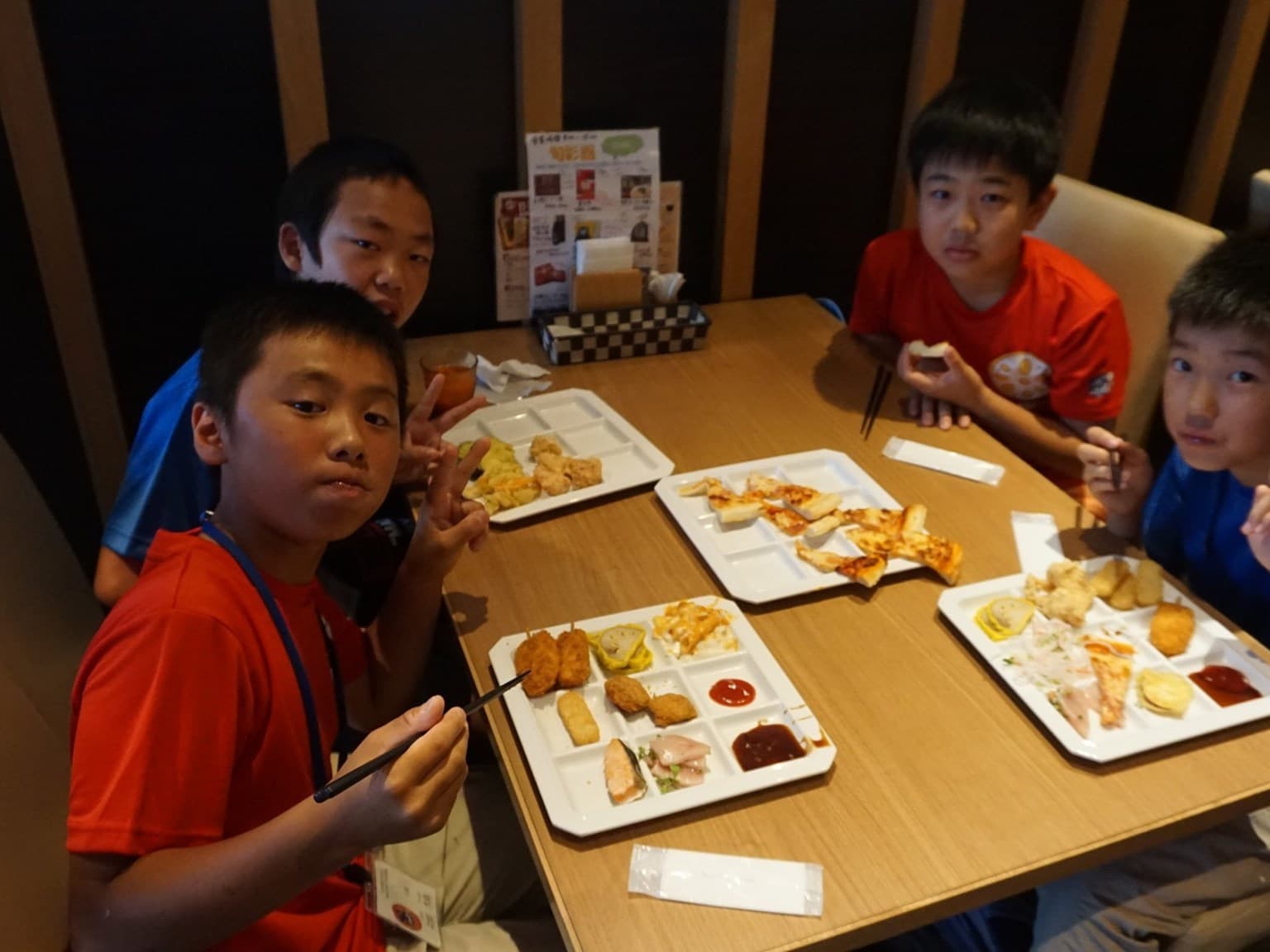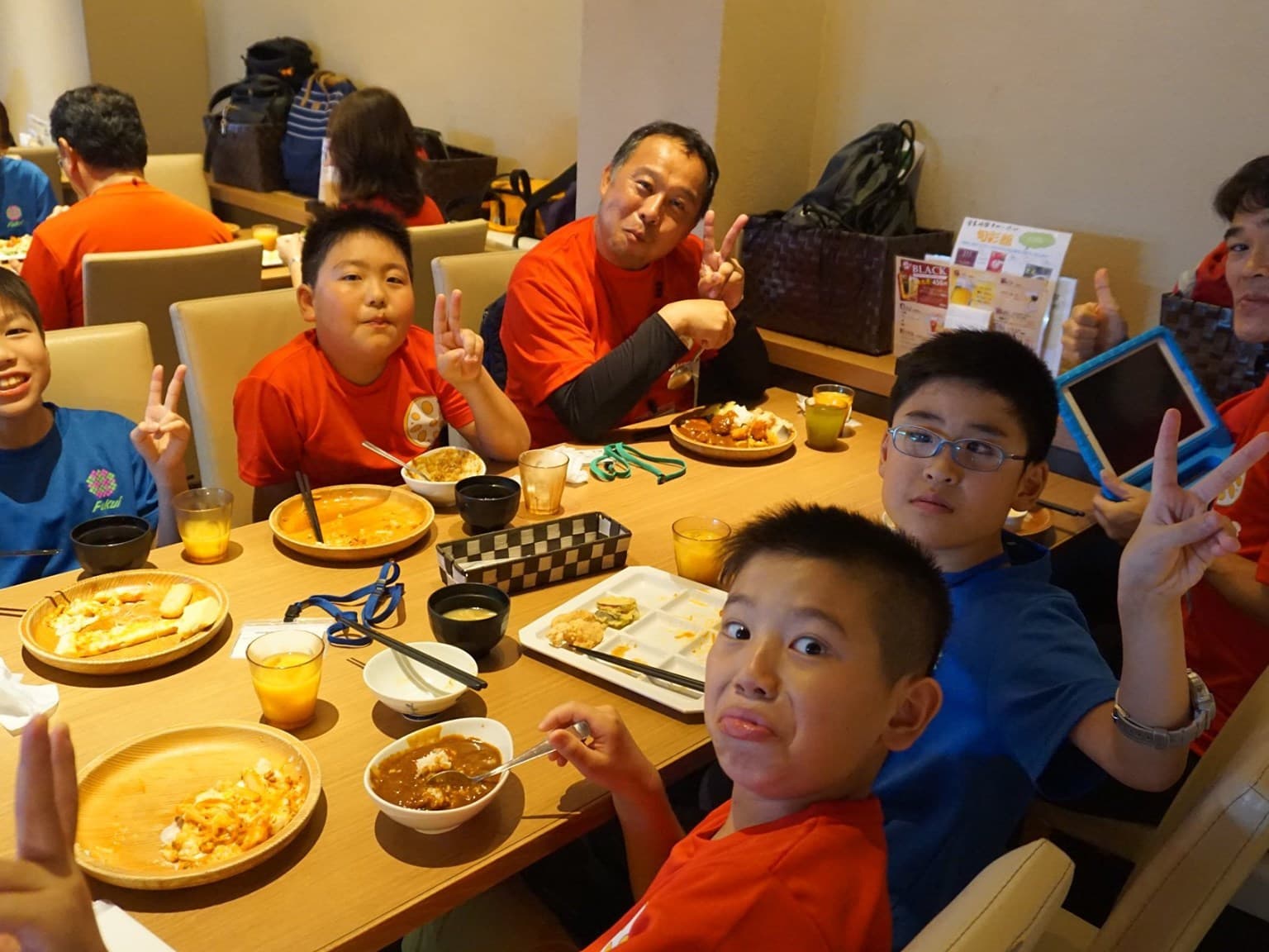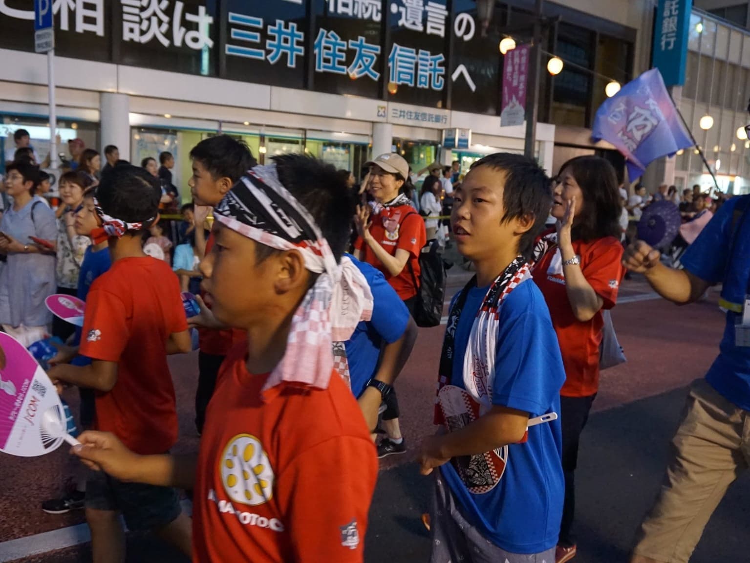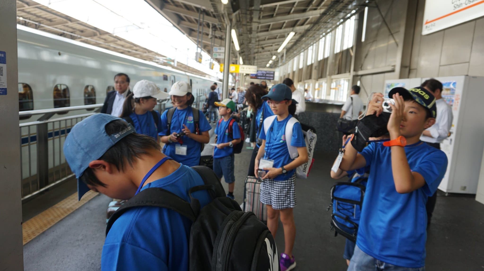 福井市団の団服である青色のTシャツを着た子供たちが,楽しみと不安と眠さが折り混ざったような表情で福井駅構内に集まってきた。