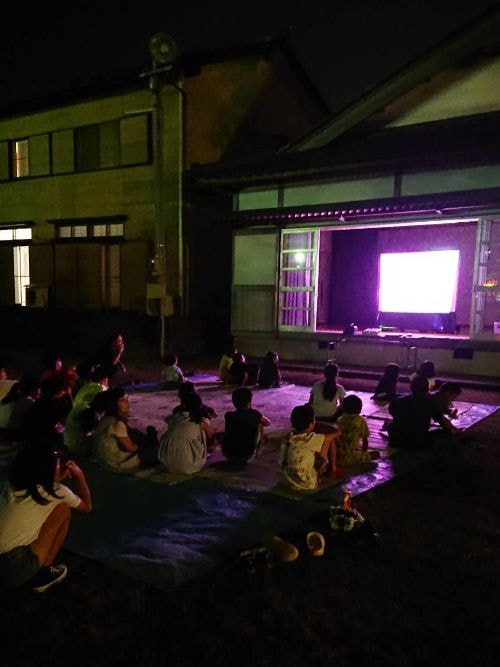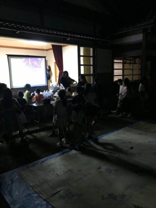 ミニ運動会が終了すると、日帰り組は帰宅、お泊り組は寝る準備へと入ります。就寝前のお楽しみ上映会。静かに映画を観てからおやすみない。